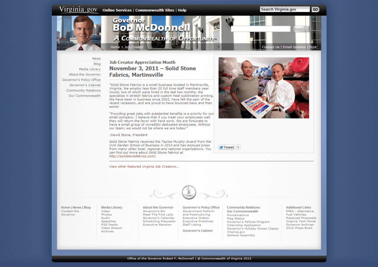 Through the years we have been honored with several awards at both state and local levels, for our perseverance and growth in business, job creation and community involvement.  Most notable, in 2010 we won the Tayloe Murphy Award, presented by the UVA Darden School of Business.